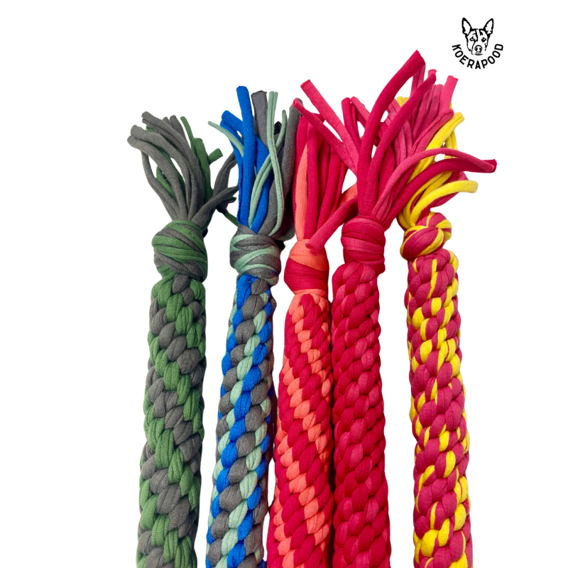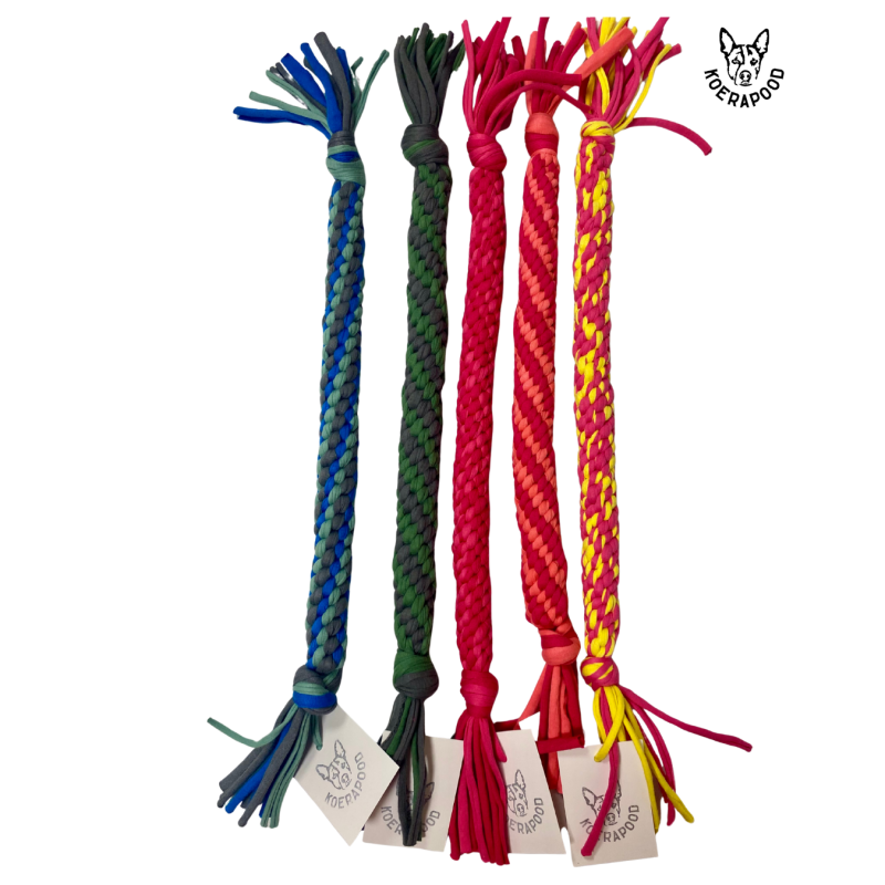 Punutud mänguasi koertele. Mänguasjal on mõlemas otsas sõlm ja piisavalt pikad narmad.